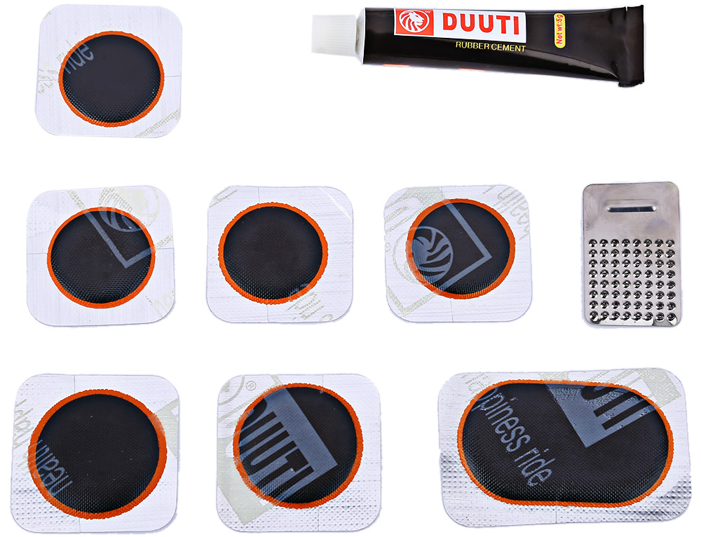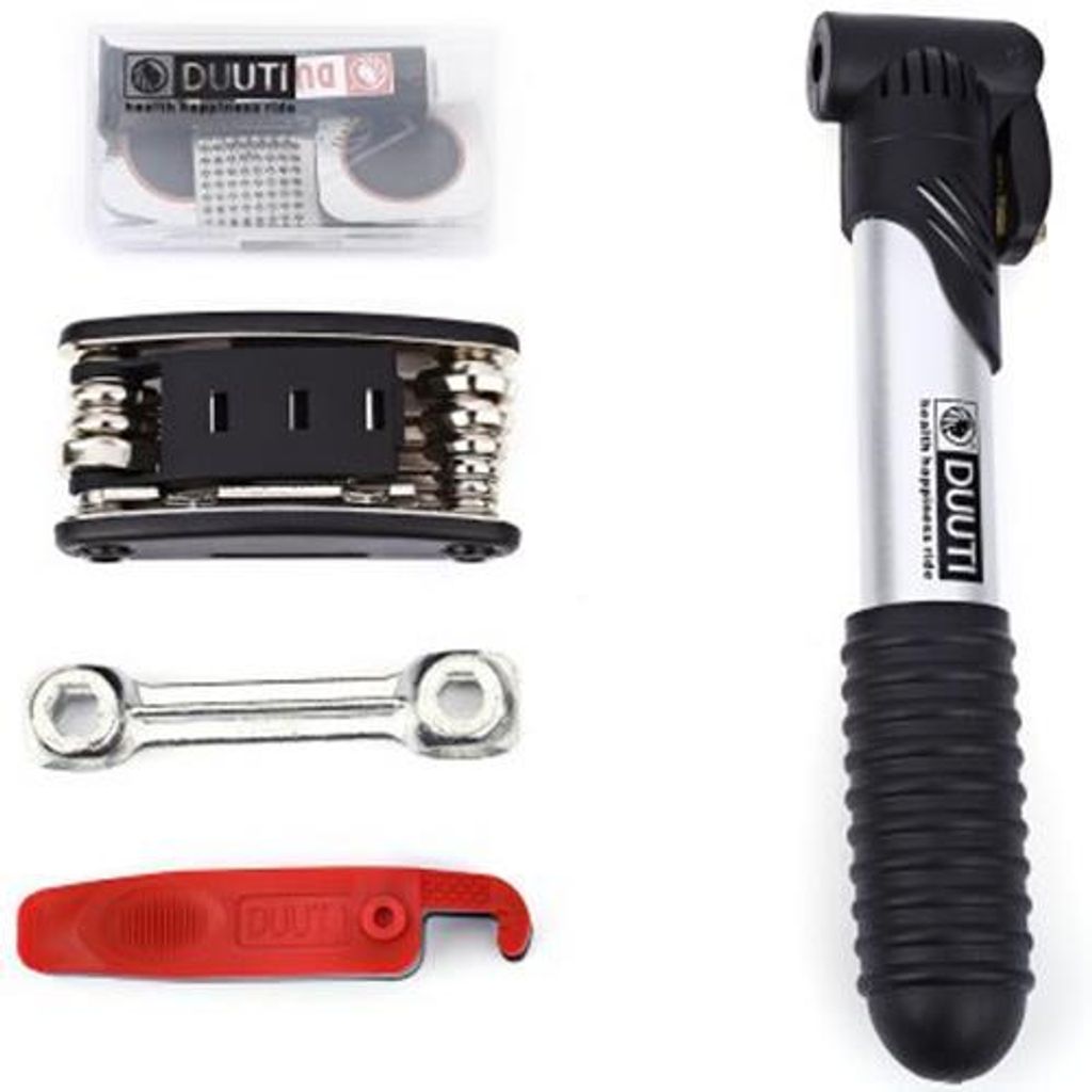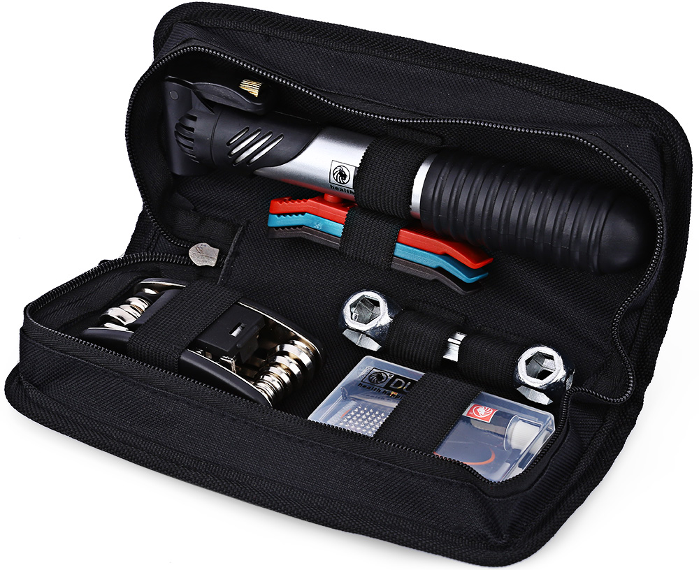 DUUTI BICYCLE FOLDING TIRE REPAIR MULTIFUNCTIONAL KIT SET WITH PORTABLE REPAIR TOOLS BAG (BLACK)