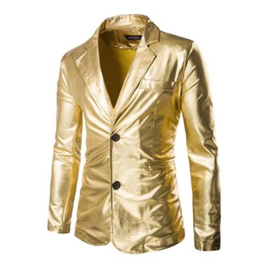 FASHIONABLE SHINNY BLAZER + PANTS TWINSET SUITS FOR MEN (GOLDEN)
