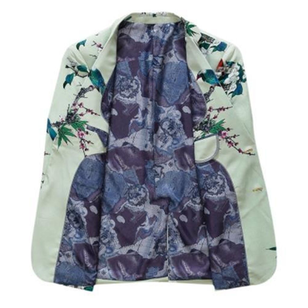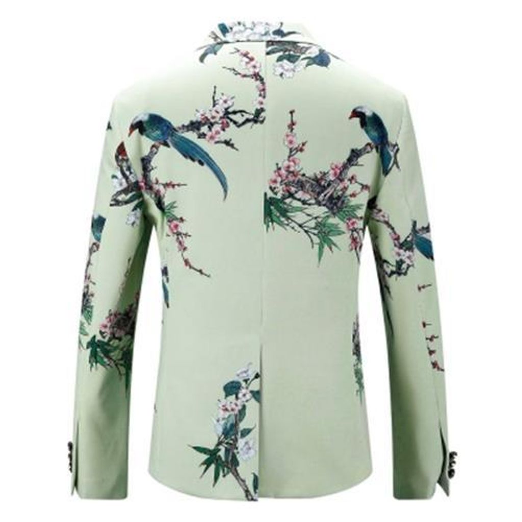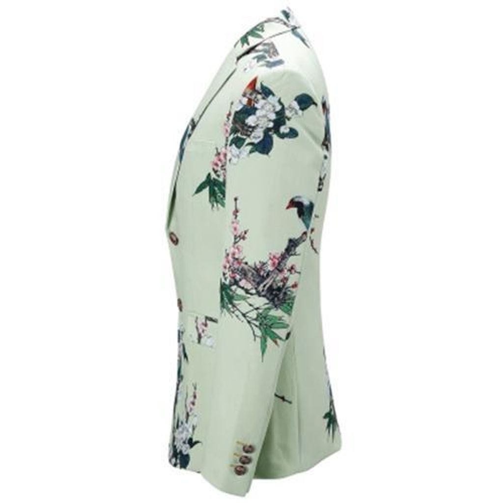FLORAL PRINT SINGLE BREASTED BLAZER (LIGHT GREEN)