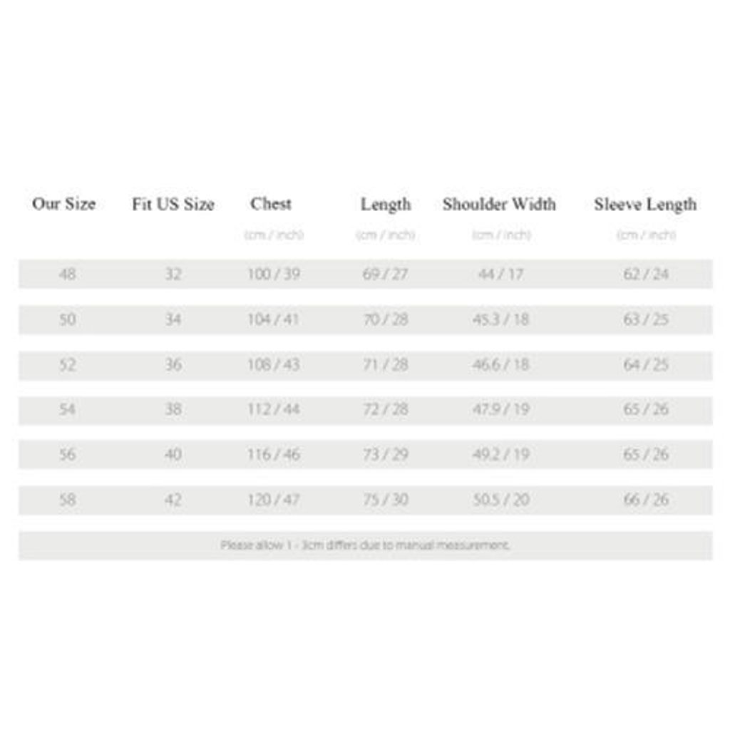 | Our Size | Fit US Size | Length | Sleeve Length | ||