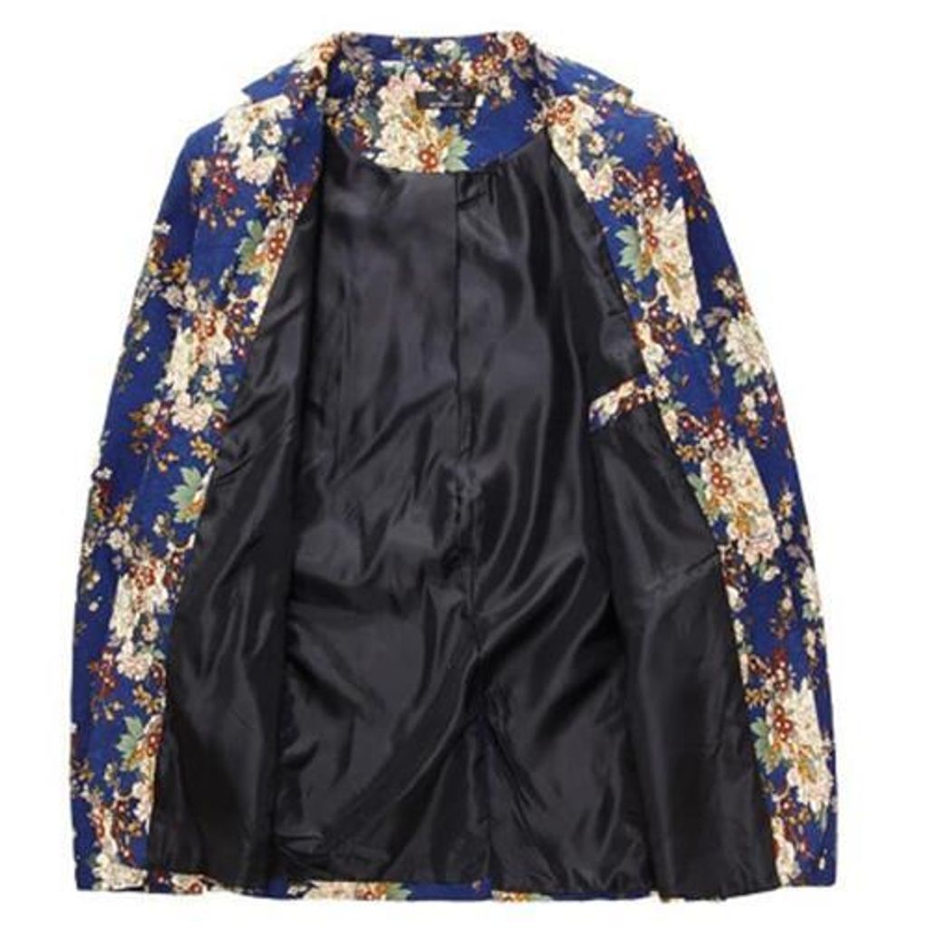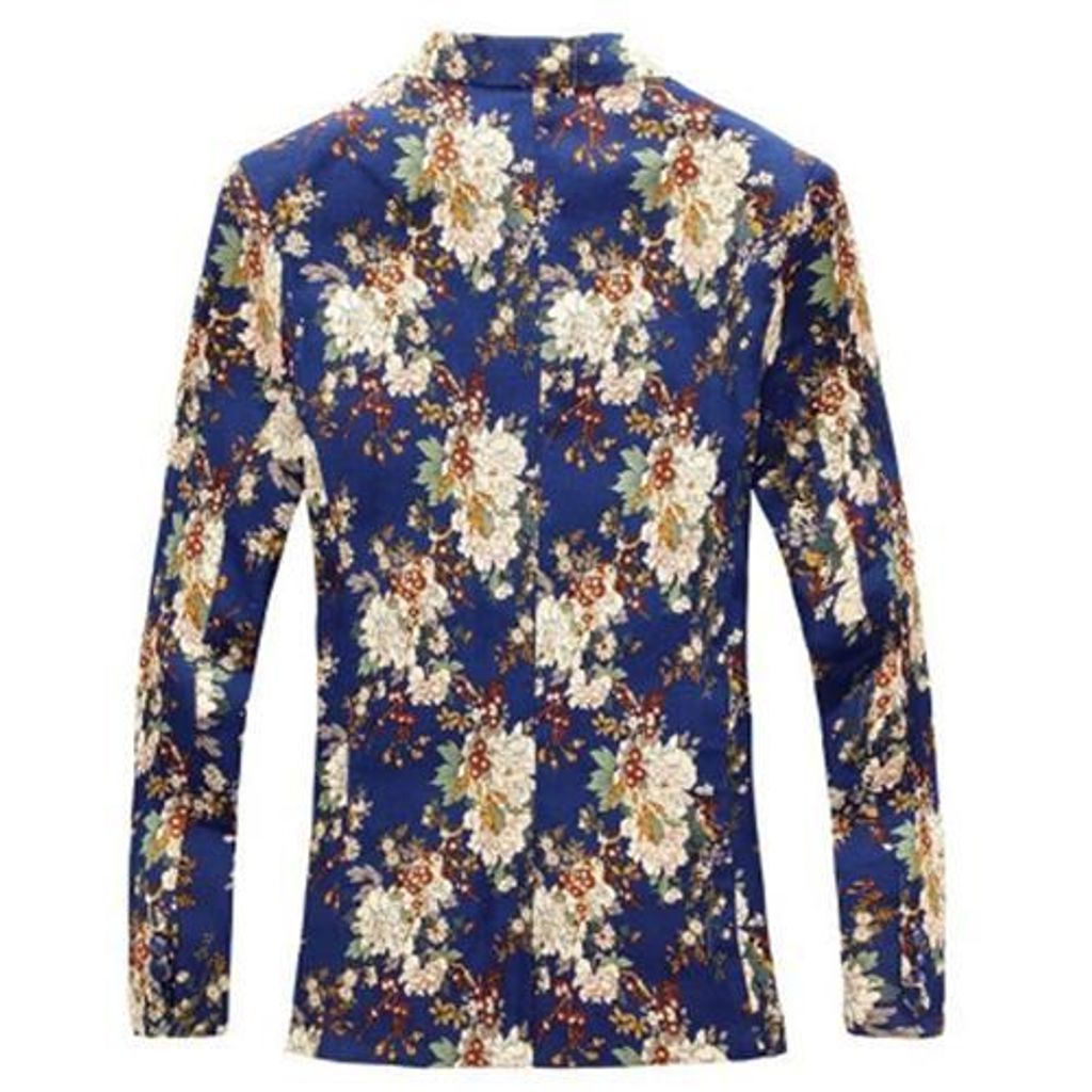 MEN BLAZE FLORAL PRINT COTTON BLEND BLAZER JACKET MEN'S CASUAL SUITS (BLUE)