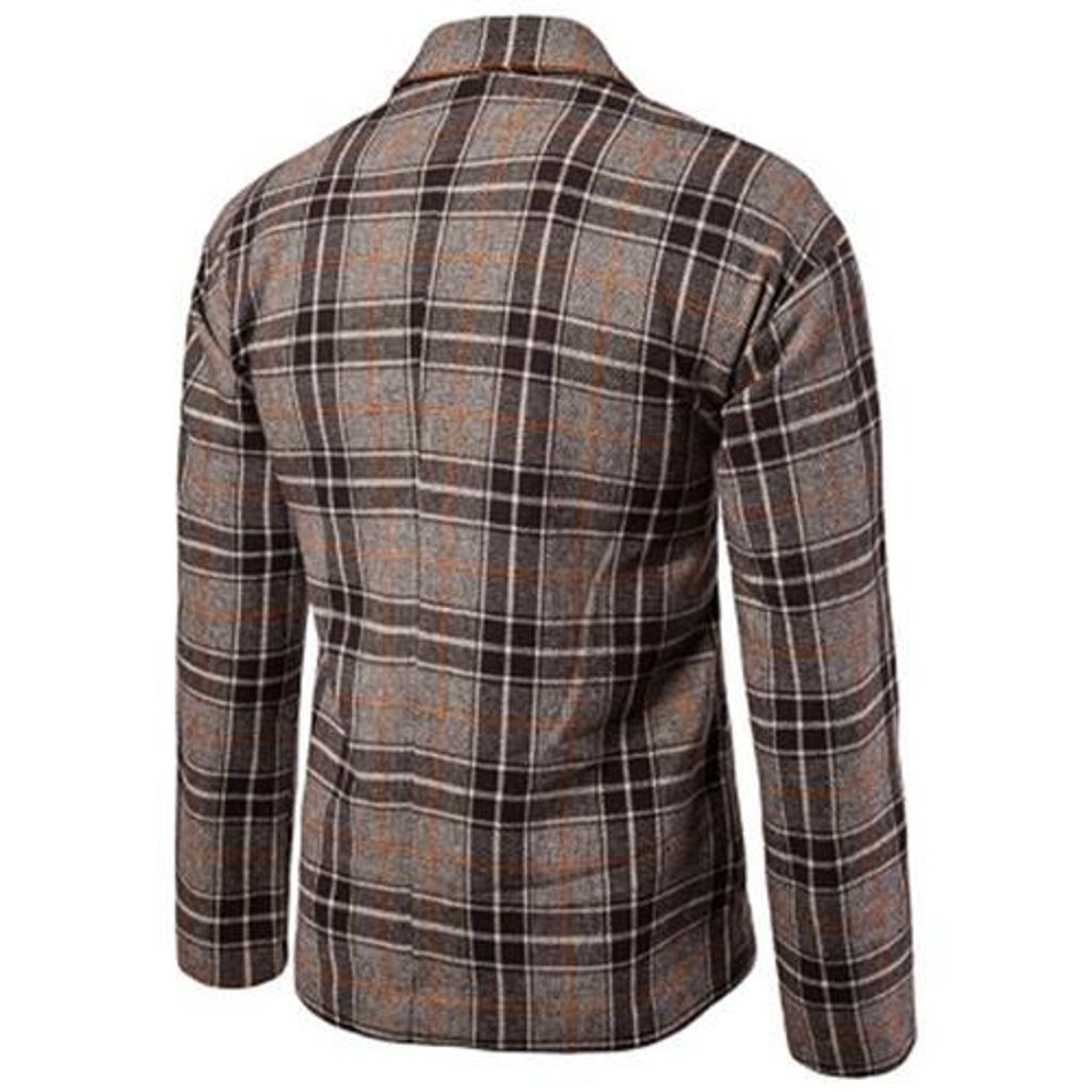 ONE BUTTON TWEED PLAID CHECKERED BLAZER (COFFEE)