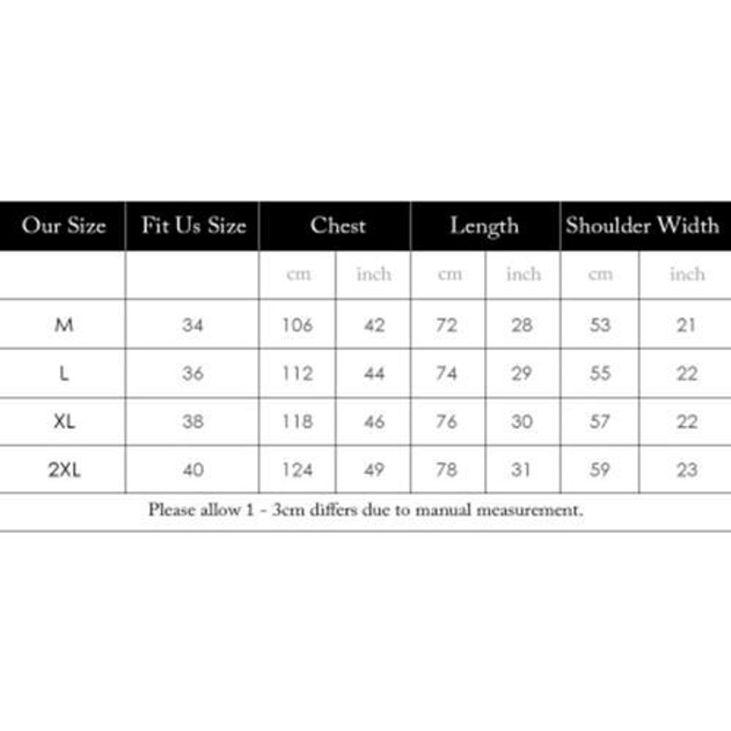 | US | UK | EU | Chest | Shoulder Width | Waist | Hips |