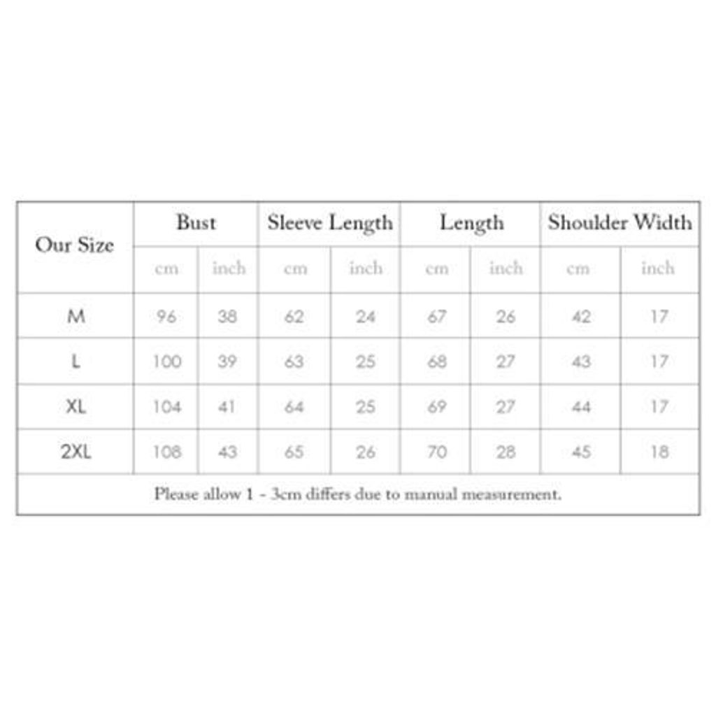 | 3XL | XL | 101~106 | 43 | 86~91 |