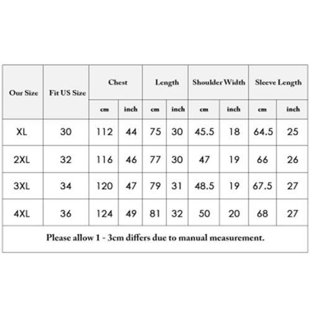 | Our Size | US/EU/AU Size | Chest | Neck | Waist |