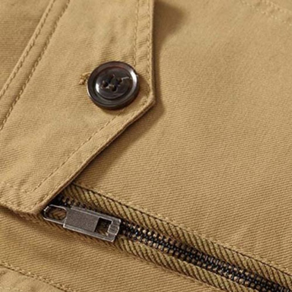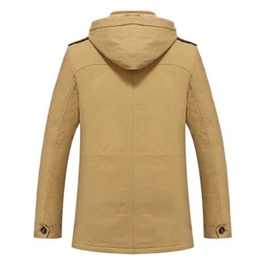 EPAULET DESIGN DETACHABLE HOOD FLOCKING COAT (KHAKI)