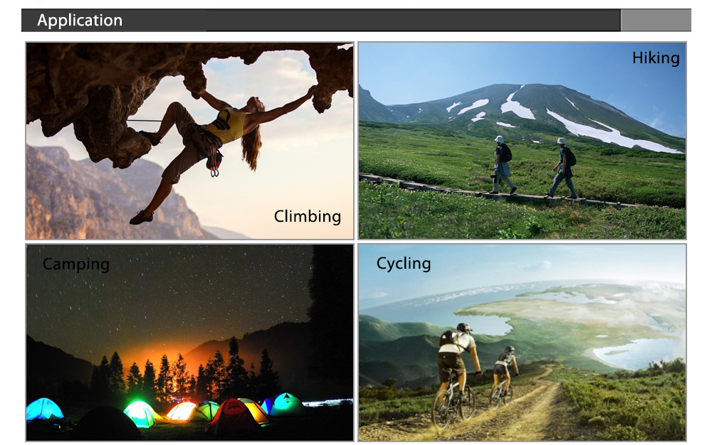 - Suitable for climbing, camping, hiking, trekking, etc.
