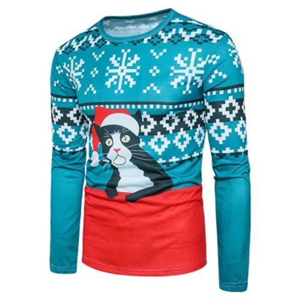 CREW NECK 3D CAT GEOMETRIC PRINT CHRISTMAS T-SHIRT (COLORMIX)