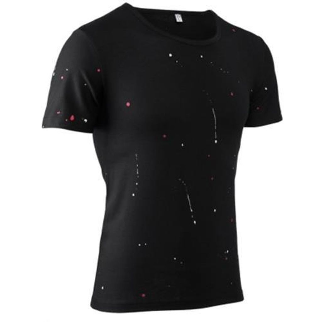 ROUND NECK SHORT SLEEVE PRINTED TRENDY T-SHIRT FOR MEN (BLACK)