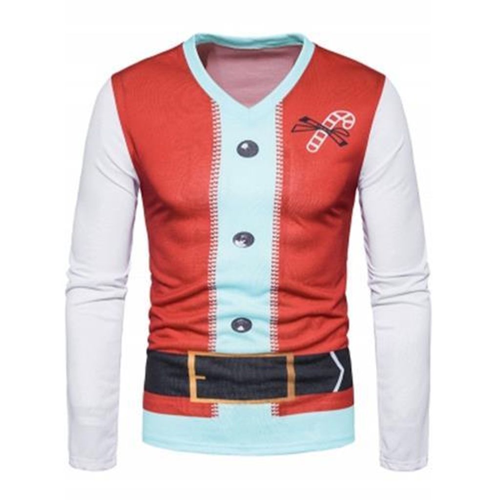 V NECK CHRISTMAS SANTA COSTUME PRINT UGLY T-SHIRT (COLORMIX)
