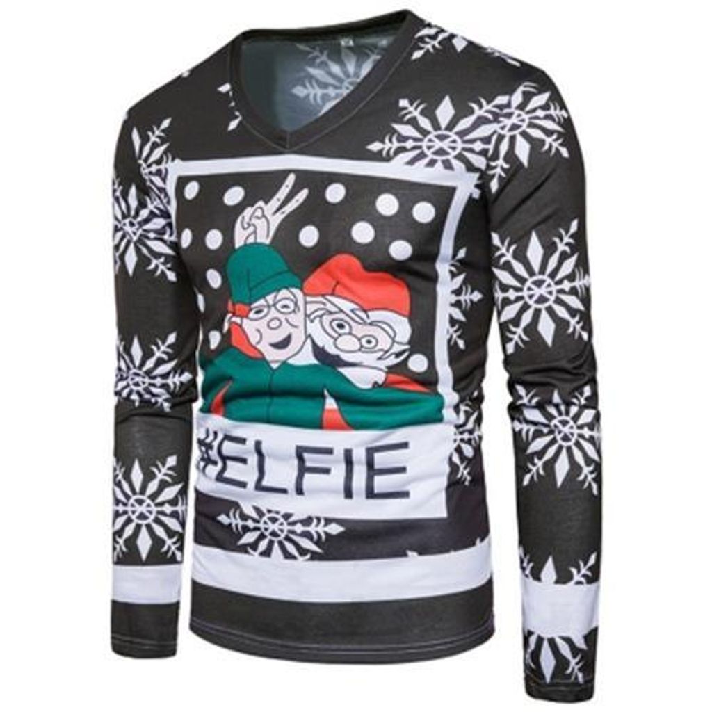 V NECK SNOWFLAKE CHRISTMAS SANTA PRINT UGLY T-SHIRT (COLORMIX)