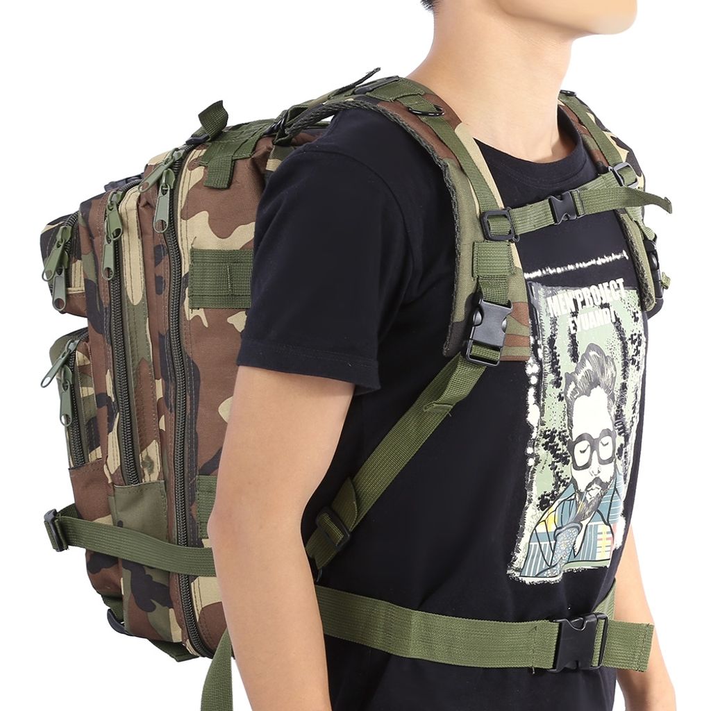 3P MILITARY TACTICAL 30L OXFORD BACKPACK FOR CAMPING TRAVELING (JUNGLE CAMOUFLAGE)