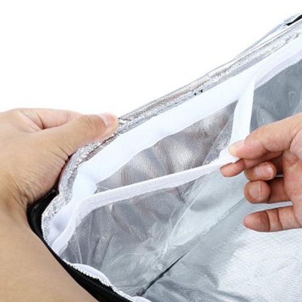 - Designed with side pockets around the cooler bag where you can store small things, such as keys, bottles, forks, utensils, napkins, straws and condiments, etc.