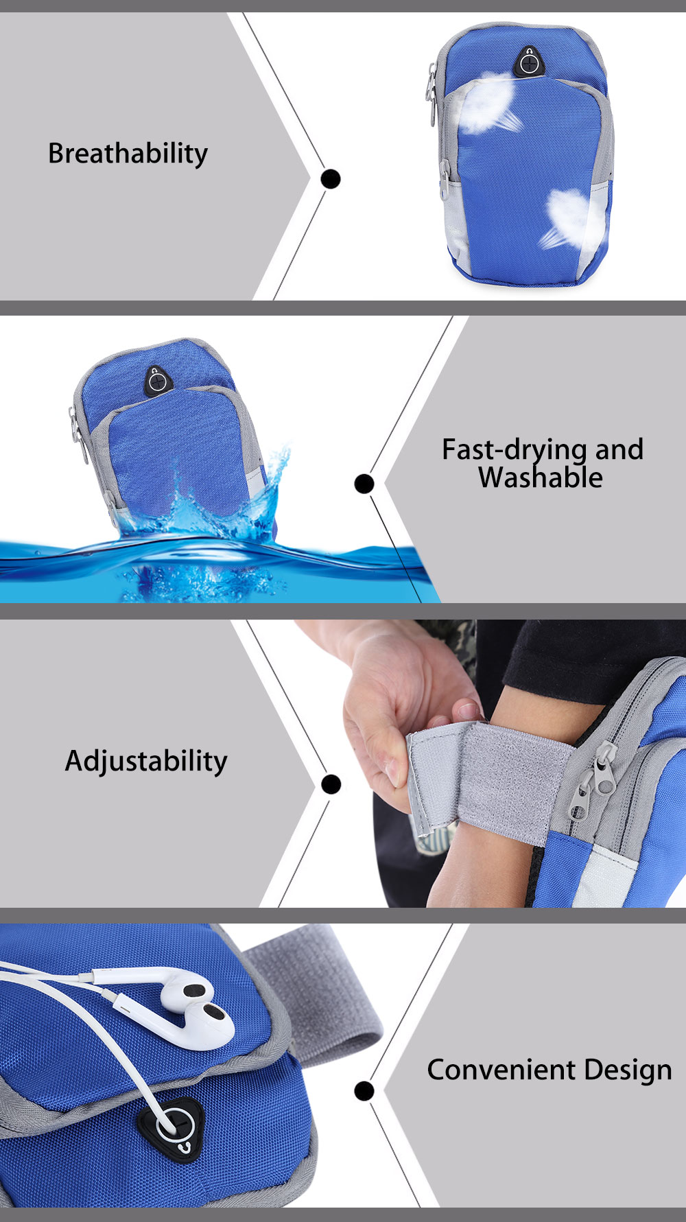 The special sport gym bag pouch is designed for phone and key storage when you are enjoying your exercise, which provides you with the versatility of carrying something you need.